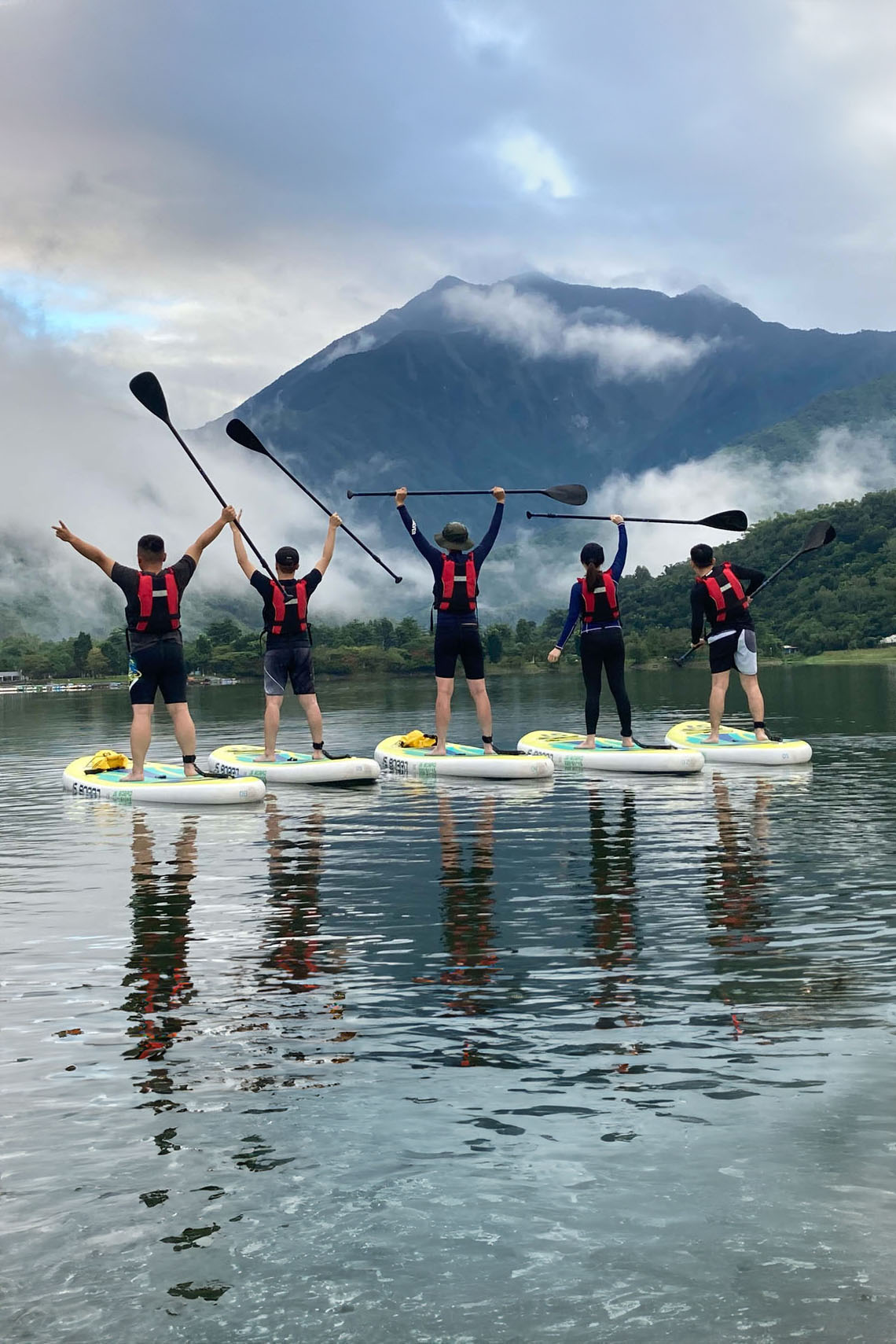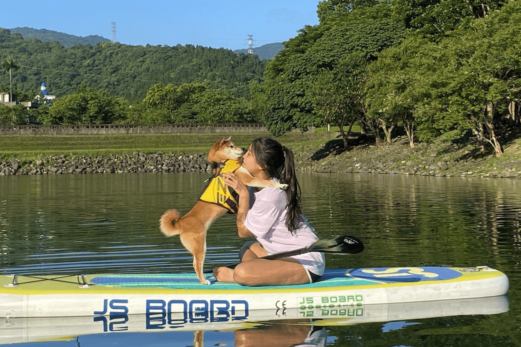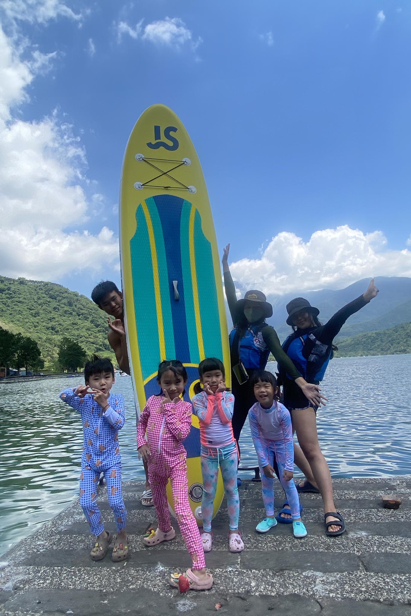 當然可以!我們有多年帶狗狗上板的經驗,使用寬大且穩定的板子,活動地點也在風平浪靜的鯉魚潭內湖區。狗狗通常很快適應,許多甚至比人還愛玩水